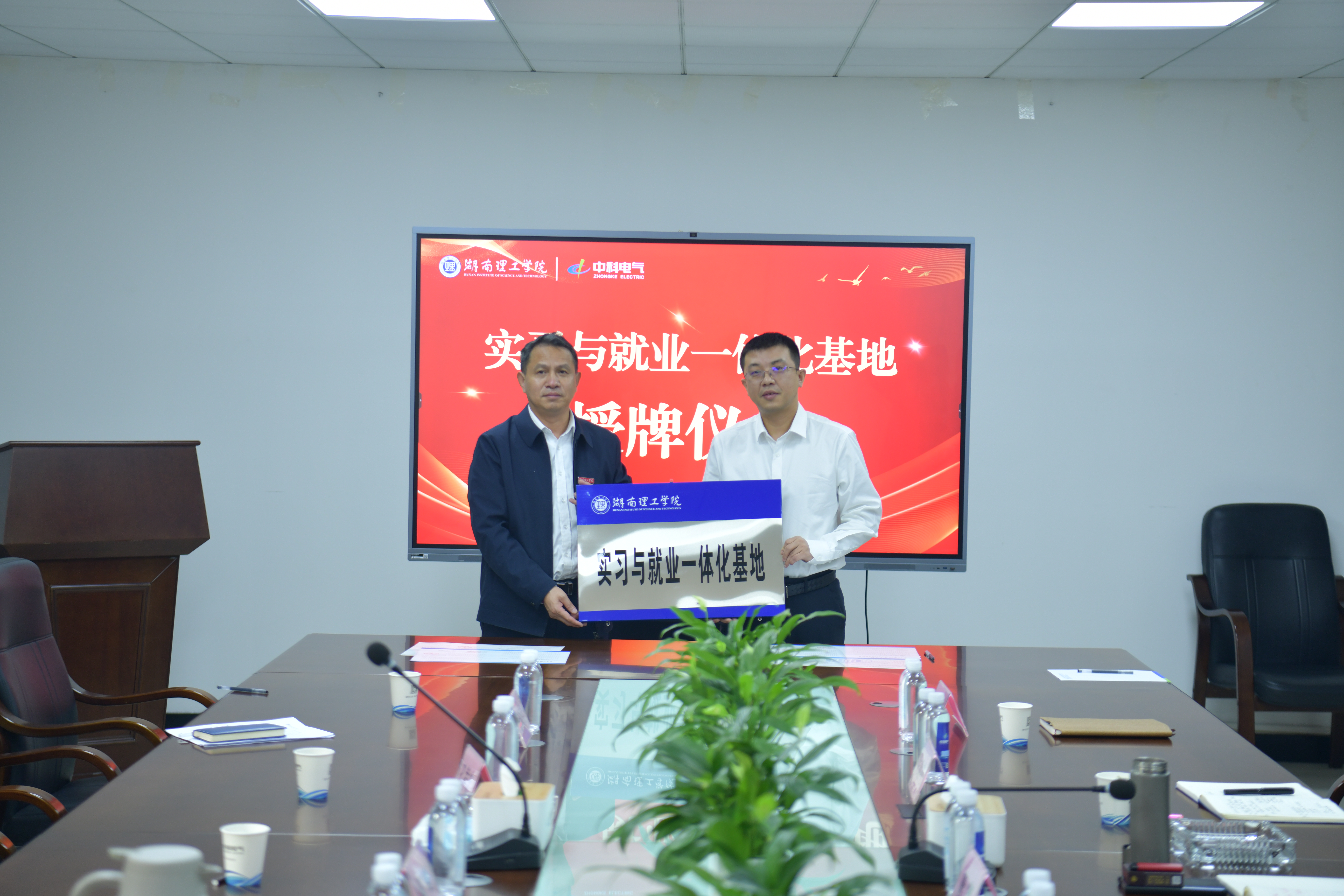 座谈会后,学院与中科电气正式签署校企合作协议,并举行"实习与就业一体化基地"授牌仪式。此次交流活动在友好务实氛围中圆满结束。双方表示,将以此次合作为契机,建立常态化沟通机制,完善合作模式,拓展合作领域,为我国电气行业蓬勃发展注入新活力,书写能电人的辉煌篇章。