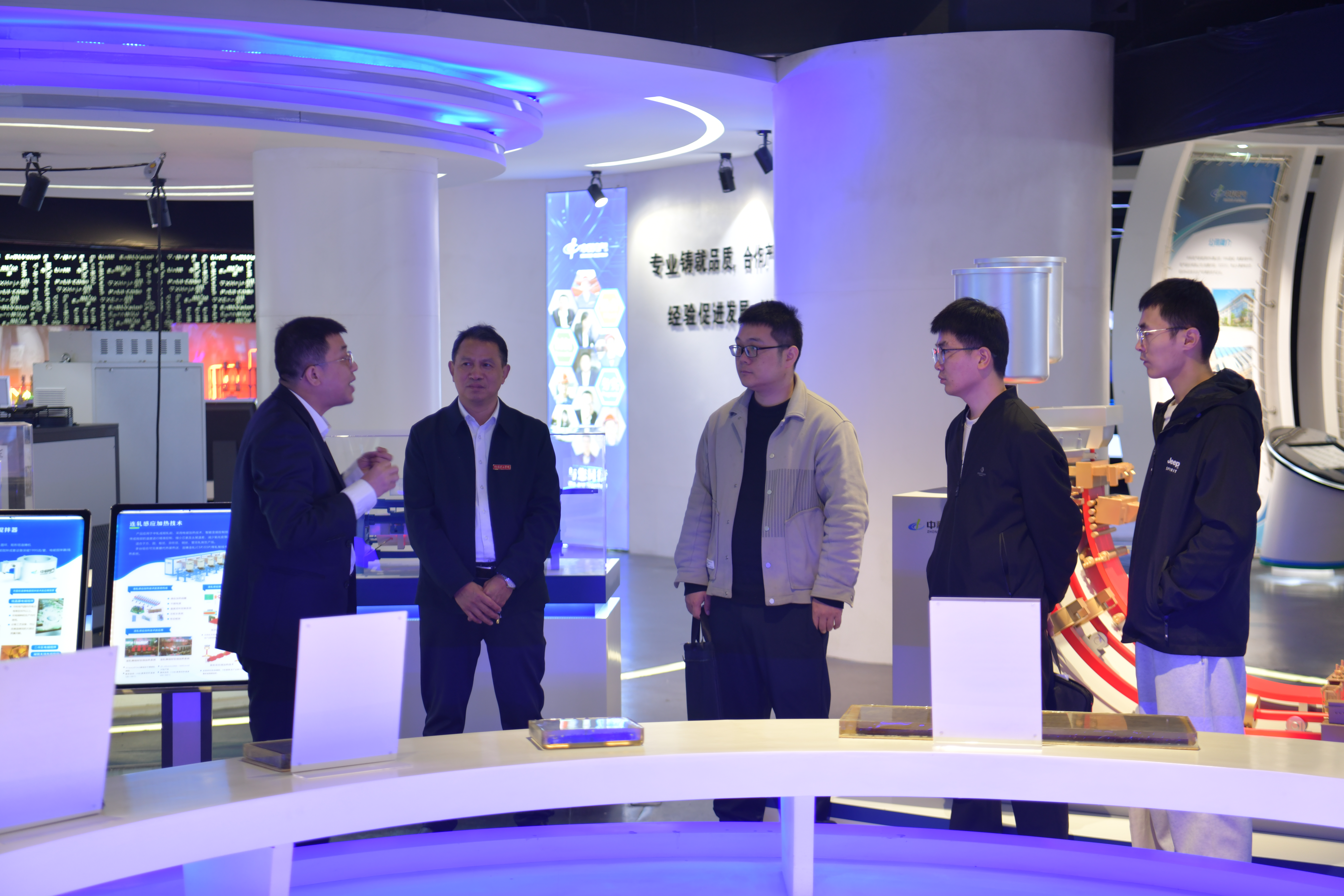 在中科电气工作人员带领下,学院团队依次参观了公司展厅、生产车间和技术中心。展厅内,展示着中科电气在锂离子电池负极材料领域从艰难探索到行业领先的发展历程。生产车间里,自动化生产线高效运转,工人们专注严谨,尽显企业卓越制造实力与对品质的执着追求。技术中心内,先进设备与科研人员专注钻研的身影,彰显出强大的创新活力。
