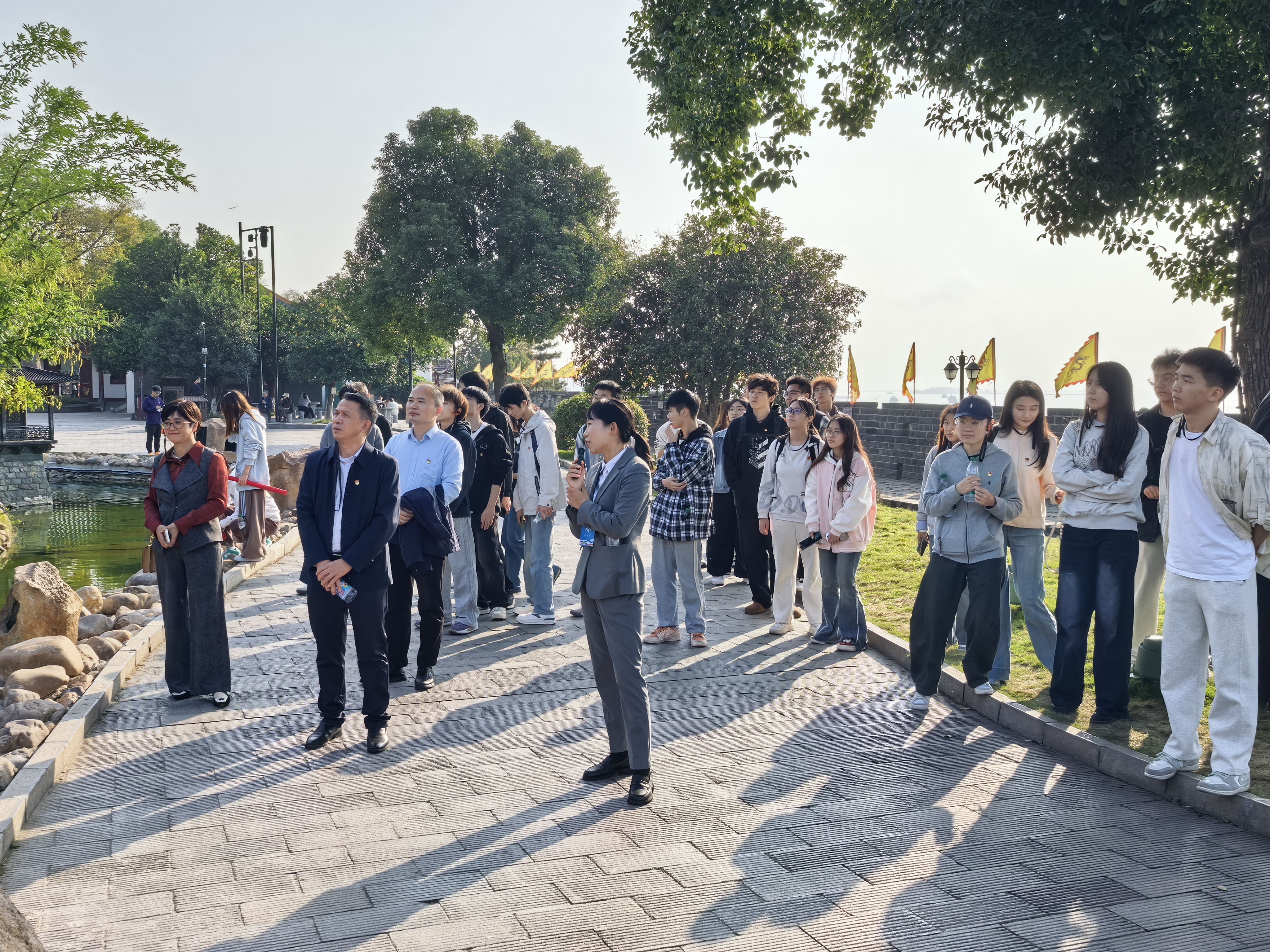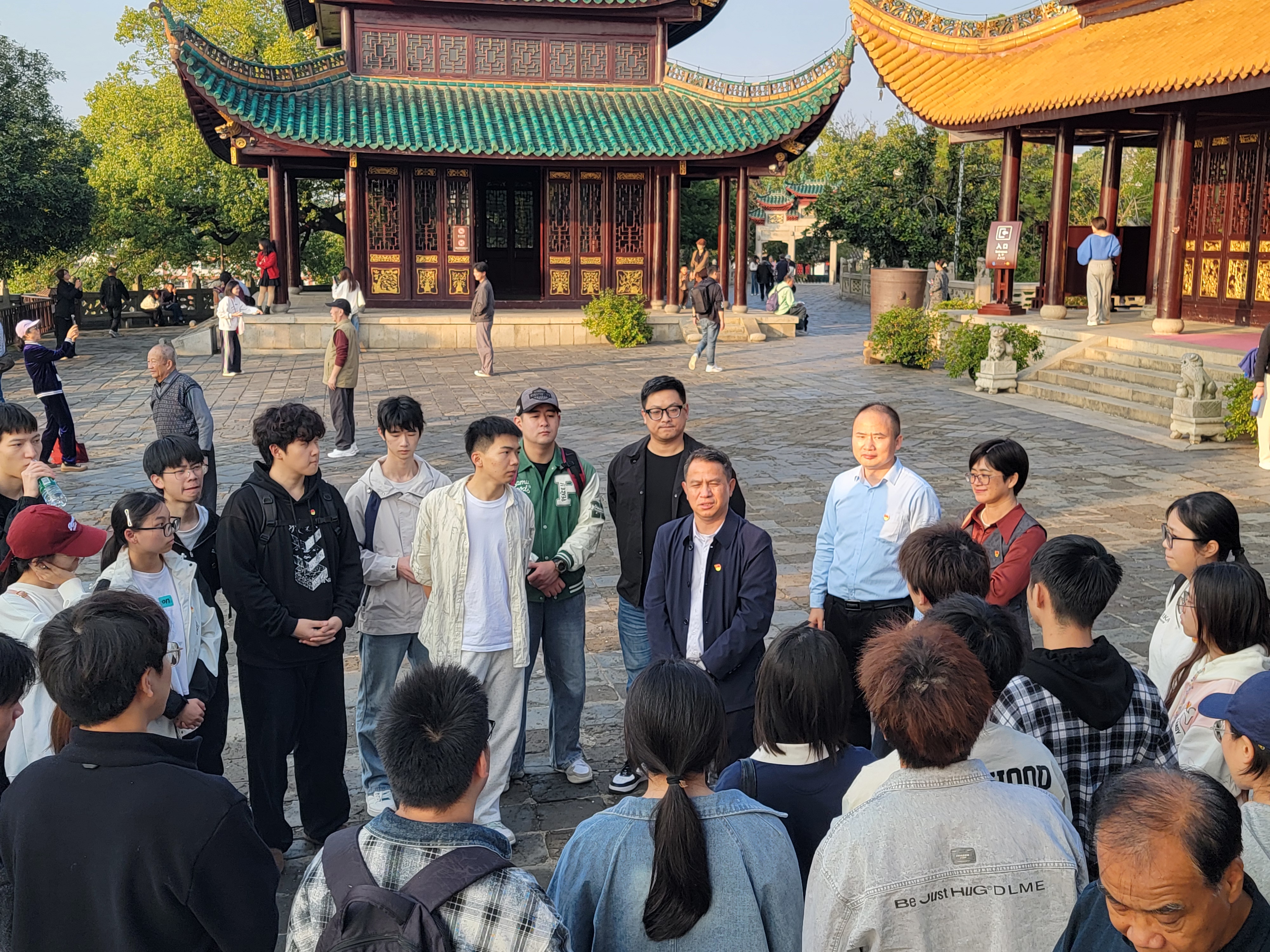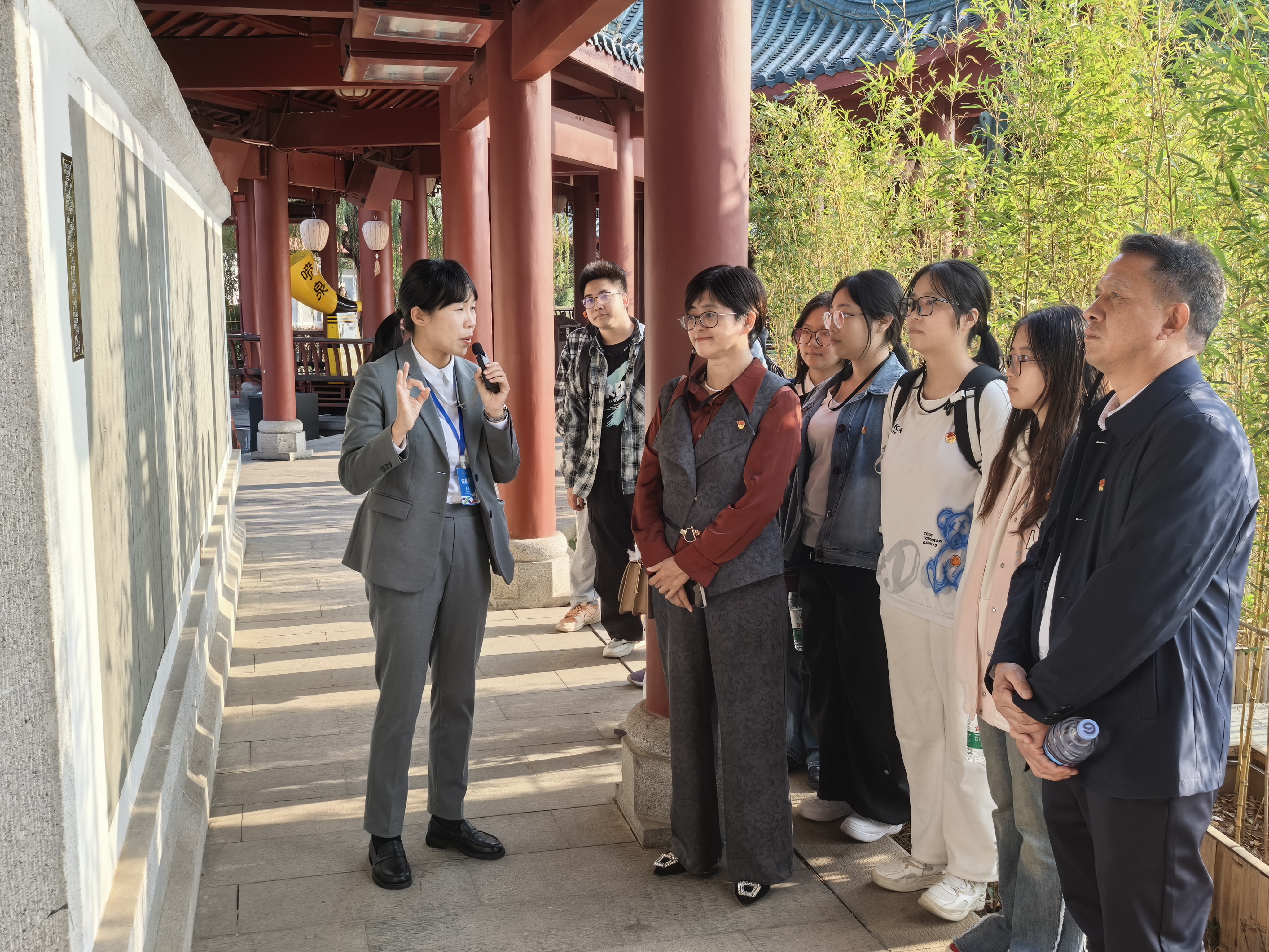 “先天下之忧而忧,后天下之乐而乐”,范仲淹笔下的岳阳楼不仅是江南文化地标,更是中华民族担当精神的象征。师生们沿“仙梅亭—三醉亭—主楼”参观,在讲解员的引导下,深入了解岳阳楼的建筑智慧与人文底蕴:从唐代张说重修楼阁的治世担当,到宋代滕子京“政通人和,百废具兴”的实干精神;从杜甫“戎马关山北,凭轩涕泗流”的家国愁思,到毛泽东“洞庭波涌连天雪,长岛人歌动地诗”的豪迈气概。一幅幅历史画卷在眼前展开,让“以天下为己任”的精神基因在青年心中悄然扎根。
