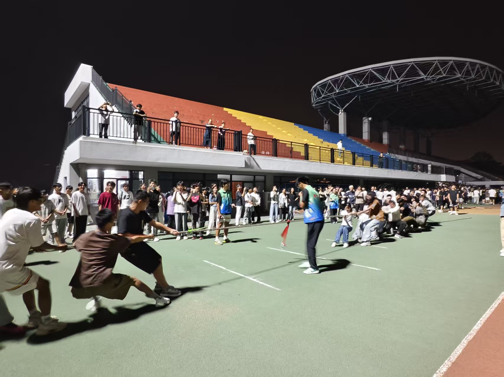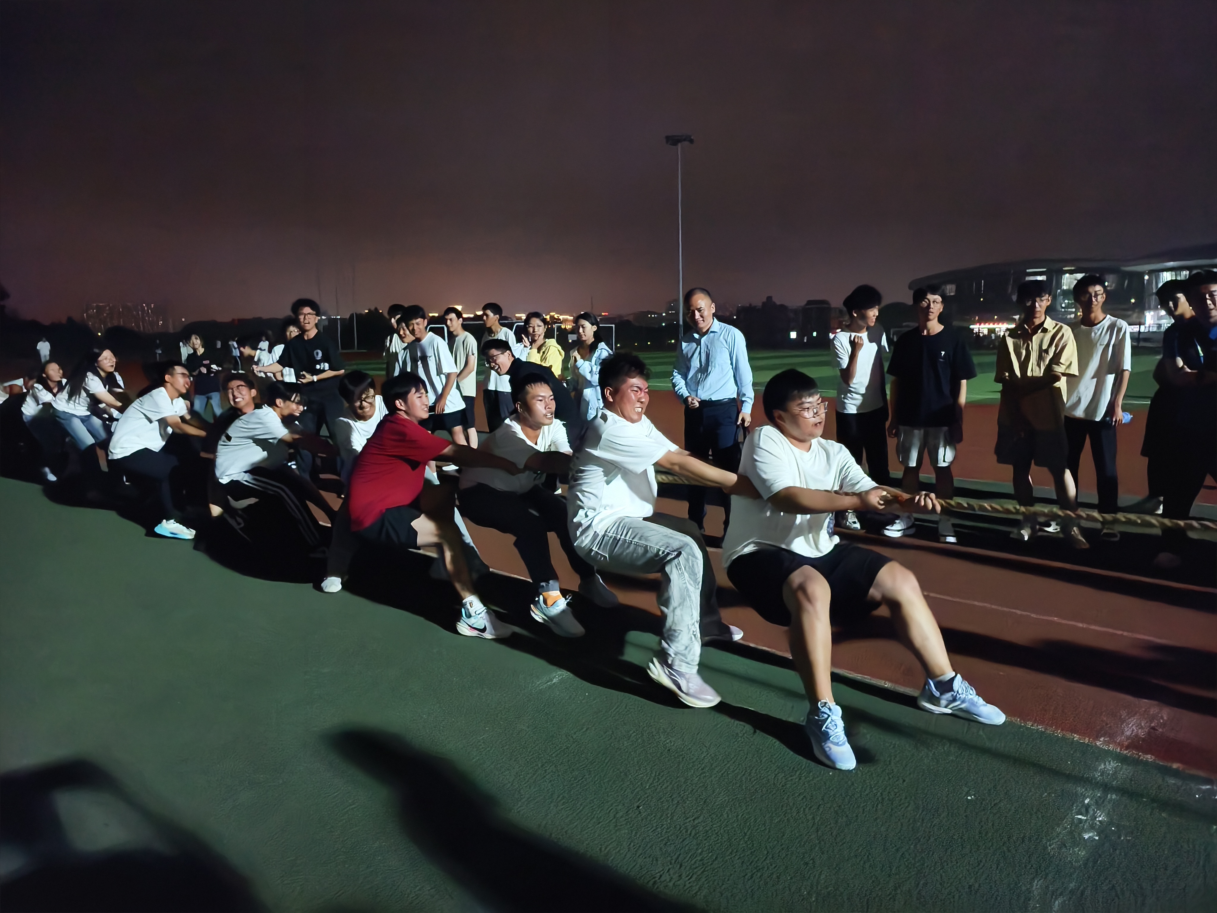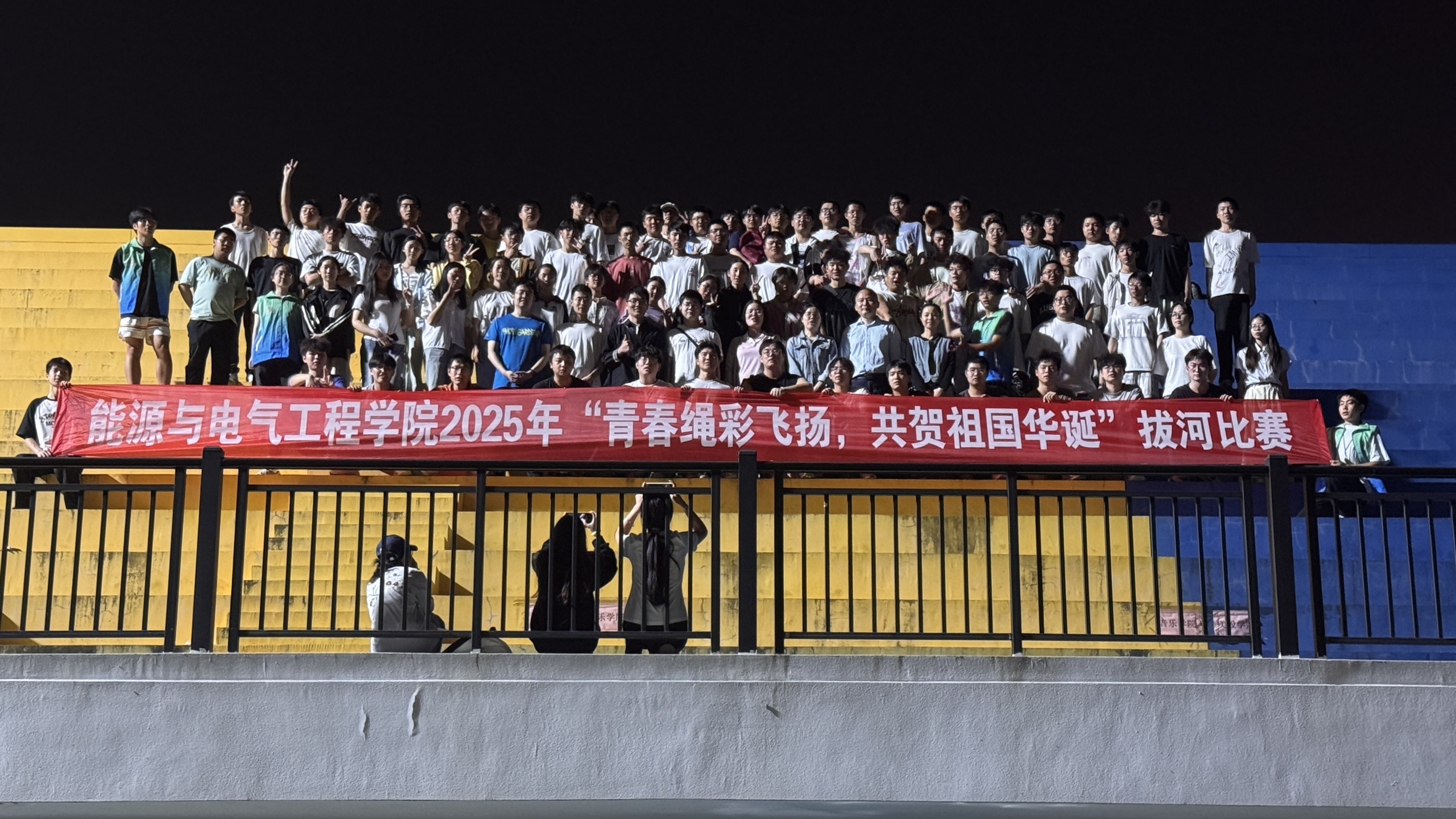 9月29日晚,能源与电气工程学院2025年“青春绳彩飞扬,共贺祖国华诞”拔河比赛在南院田径场激情开赛。学院党委书记曹斯曼、全体辅导员、班主任及11支班级代表队齐聚赛场,以团结协作的体育精神共庆祖国华诞,展现新时代青年学子的蓬勃朝气。