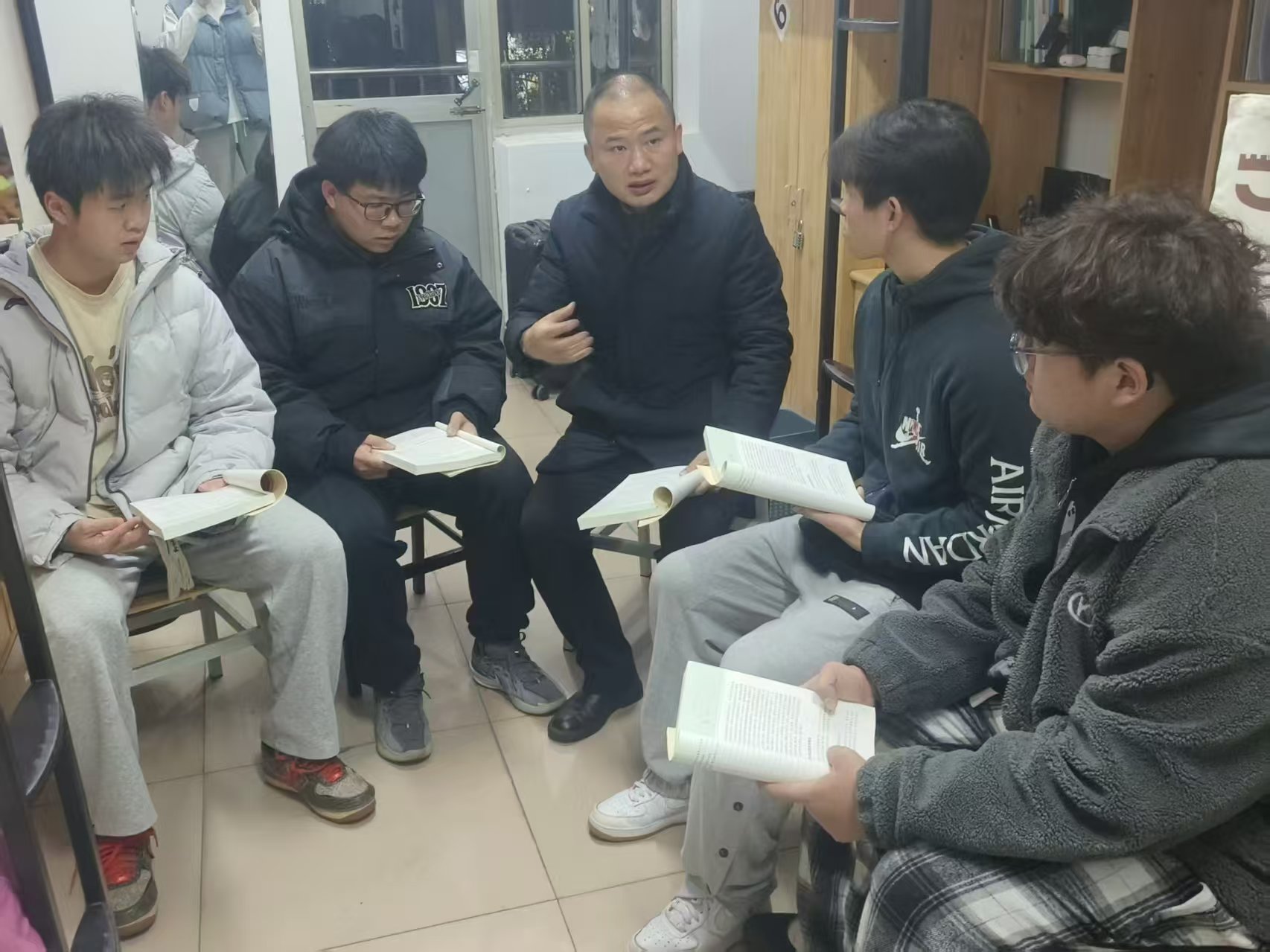 辅导员来查寝时,总爱在他们寝室多待会儿:“这儿的氛围,像个小家庭。”后来,辅导员带着“青年大学习”小组来他们寝室开座谈会,墙上贴满的“学习心得”,成了学院的“网红打卡点”。